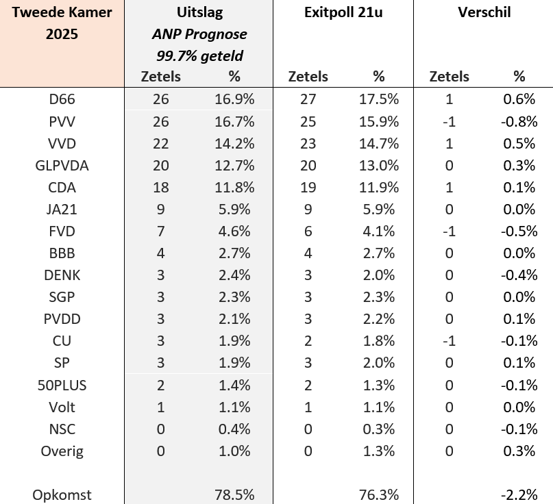 Hoe nauwkeurig was de exitpoll? – Tweede Kamerverkiezing 2025