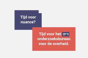 Bovenstaand concept is onderdeel van de campagne “Tijd voor nuance” die I&O Research vorig jaar is gestart. Hiermee proberen we op een ludieke manier onze boodschap over te brengen op Haagse opdrachtgevers. Als onderzoeksbureau voor overheid en non-profit gaat I&O Research namelijk een stap verder en dieper dan het eendimensionale vóór en tégen. We willen niet alleen laten zien wat mensen vinden, maar ook wie dat vinden en waarom ze dat vinden.