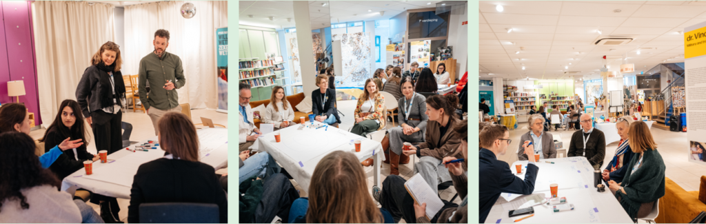 Na een Oekraïense lunch gaf één van de onderzoekers van Ipsos I&O een korte samenvatting van de resultaten van het onderzoek. Daarna zijn de resultaten verder besproken in de vorm van een wereldcafé: er waren zes tafels met in totaal drie thema’s (ruwweg: het verleden, het heden en de toekomst van de social hubs). Per tafel was er een tafelvoorzitter onder wiens leiding deelnemers zich bogen over de uitkomsten en implicaties van het onderzoek. De sessie verliep in drie rondes waarbij deelnemers alle drie de thema’s afliepen in verschillende tafelsamenstellingen. De tafelvoorzitters waren afkomstig uit de kwalitatieve onderzoeks-unit van Ipsos I&O Publiek.